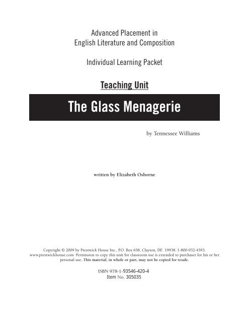 The Glass Menagerie Textpdf. Just as the others are finishing dinner the lights go. Check Pages 1-7 of The Glass Menagerie - Prestwick House in the flip PDF version.